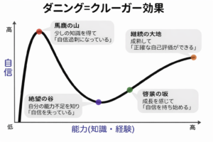 ダニング=クルーガー効果を説明する際によく用いられる曲線図です。