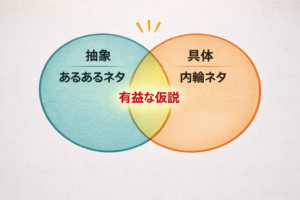 相手の個別事象を汲んだ内輪ネタ(問題・課題)=具体に重ねていくことです。